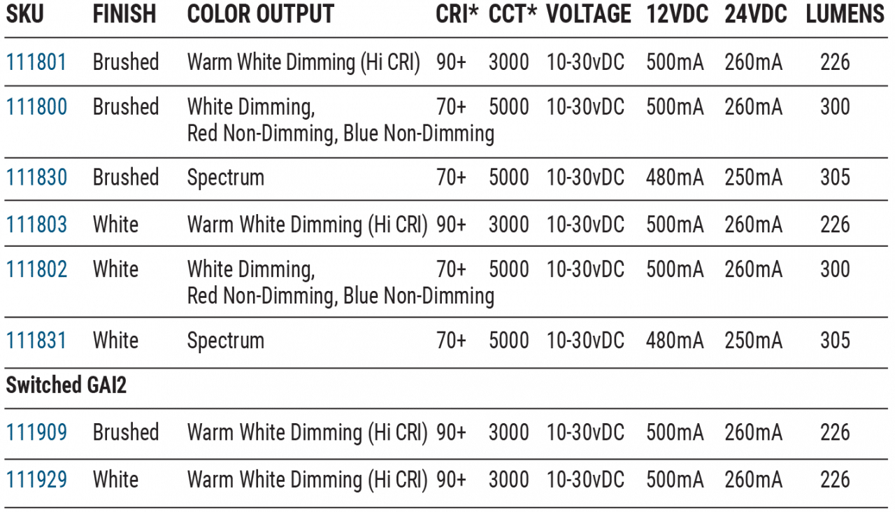 The versatile General Area Illumination (GAI) light is available with a solid aluminum heavy duty base (switched or unswitched) for applications requiring a more durable mounting option. GAI is fully sealed and IP67 rated (unswitched only) making it perfect for interior or exterior use. GAI’s small size, high output and heavy duty machining aluminum base make this light perfect for a wide range of applications: cabin reading light, cockpit task light or even a work space light.