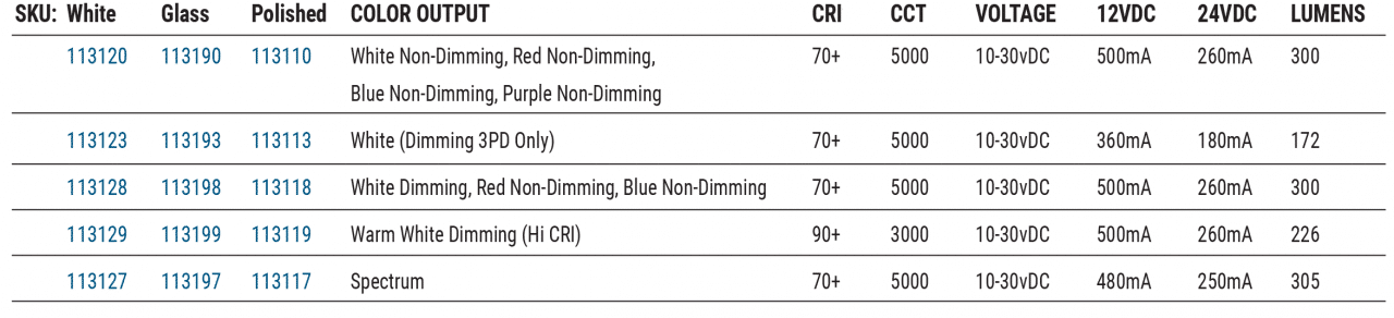 Lumitec’s Mirage LED down lights remain the best-performing down light in the category. Delivering incredible output and a profile that is among the slimmest in the industry, Mirage beat comparable 20W halogens by up to 300% in recent field studies. Completely sealed and IP67 rated, Mirage LED down lights are perfectly suited for a variety of indoor or outdoor overhead lighting needs. Output options include architectural-grade High CRI warm white, white/blue/red multi-color, or our new full-color Spectrum RGBW; offering nearly infinite output color possibilities.