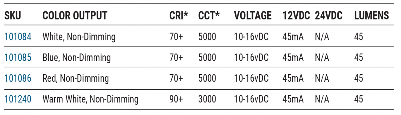 Wet or dry, the versatile Newt is tiny but mighty. Originally designed as a livewell light the Newt’s small size, amazing output, and ease of installation makes it perfect for use under cabinets, in storage lockers, lighting toe kicks, and even as an overhead light. Constructed of a durable polycarbonate and completely water sealed and IP67 compliant, the Newt is available in white, red, or a blue light. Silicone gasket included.