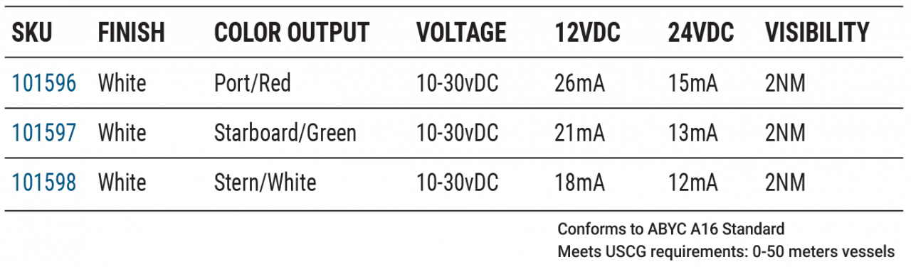 For retrofit and new applications where an inset or molded-in pocket is not possible or practical, Lumitec offers a composite surface mount navigation light. Constructed of a high durability composite material with clean styling and unmatched reliability, this contemporary design is perfect for horizontal mounting surfaces. U.S. Coast Guard approved 2nm.
